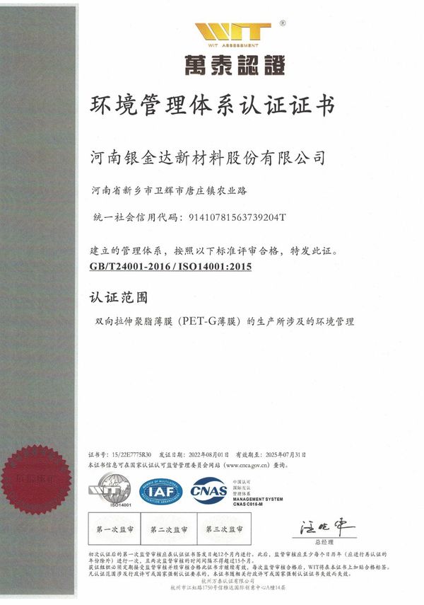 環(huán)境管理體系認(rèn)證證書(shū)