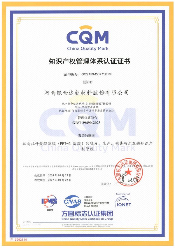 知識(shí)產(chǎn)權(quán)管理體系認(rèn)證證書(shū)