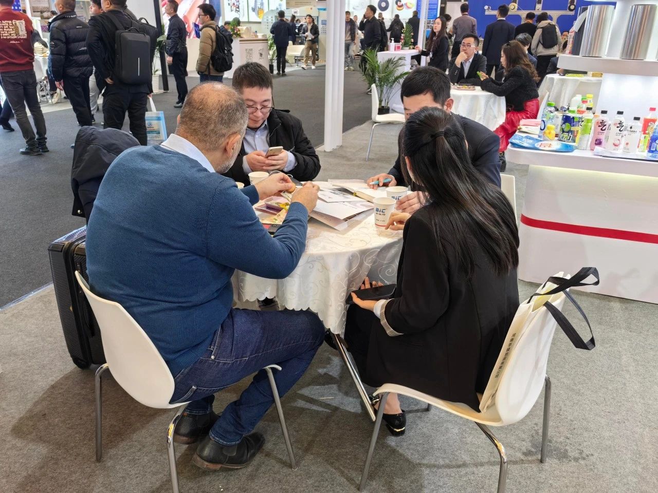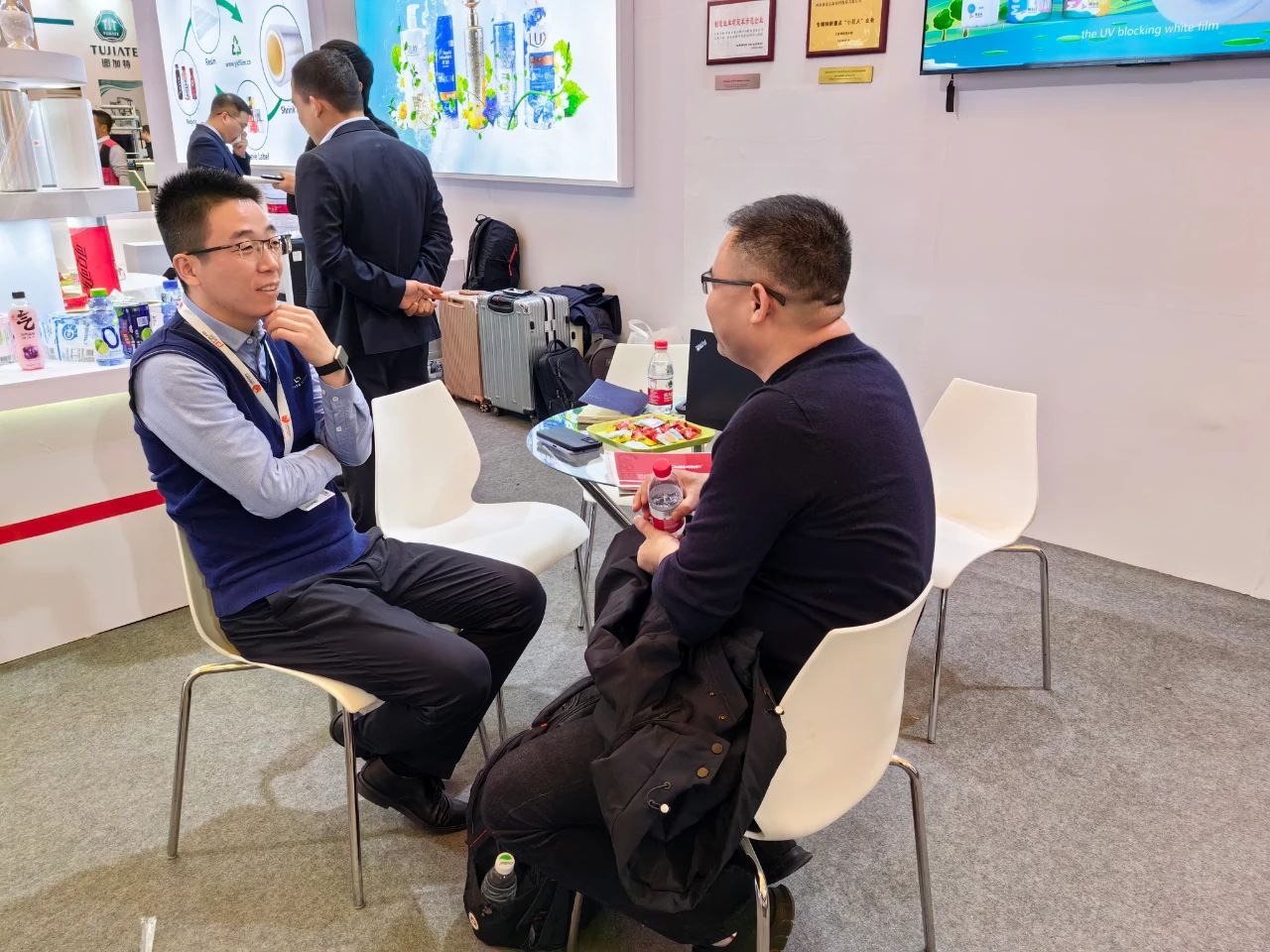 銀金達展臺位于E2館J55展位,展區(qū)設(shè)計簡潔大方、突出PETG產(chǎn)業(yè)鏈主題,在重點推介薄膜業(yè)務(wù)板塊的同時、設(shè)置了PETG切片及銀金達彩印產(chǎn)品展示專區(qū),全面展示銀金達PETG產(chǎn)業(yè)鏈風(fēng)采。展會期間,除國內(nèi)市場的眾多新老客戶外,銀金達與土耳其、墨西哥、意大利等國家的老客戶,以及來自泰國、巴基斯坦、以色列、也門、俄羅斯、白俄羅斯、多米尼加、哥倫比亞等國家的新客戶進行了友好洽談,充分交流市場信息,深入溝通業(yè)務(wù)合作細節(jié)。