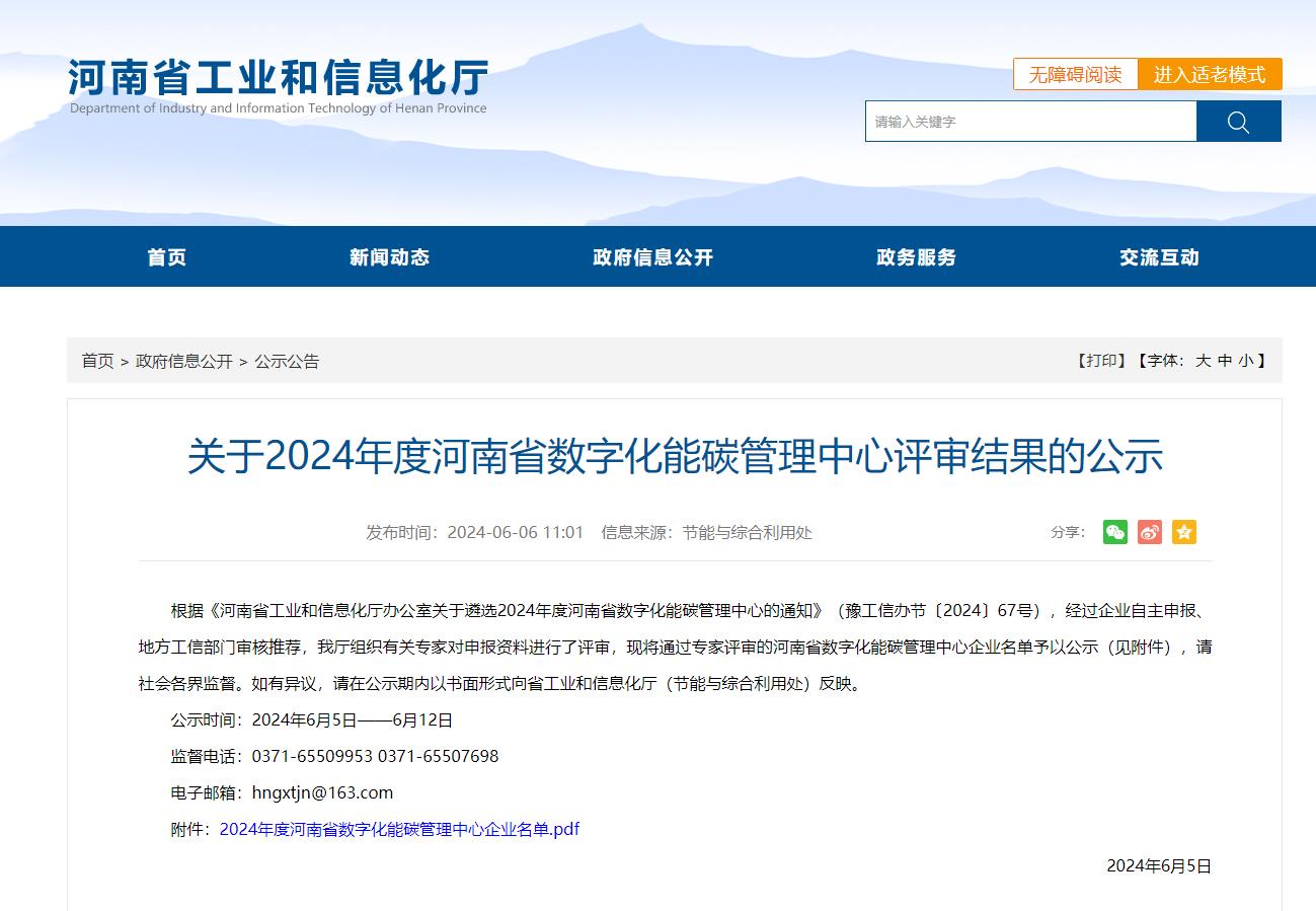 近日,河南省工業(yè)和信息化廳公布了《關于2024年度河南省數(shù)字化能碳管理中心評審結果的公示》,河南銀金達新材料股份有限公司成功入選,這是繼公司“國家綠色工廠”“河南省綠色供應鏈管理企業(yè)”、“河南省綠色制造服務供應商”后,公司在綠色低碳、數(shù)字賦能上獲得的又一項殊榮。
