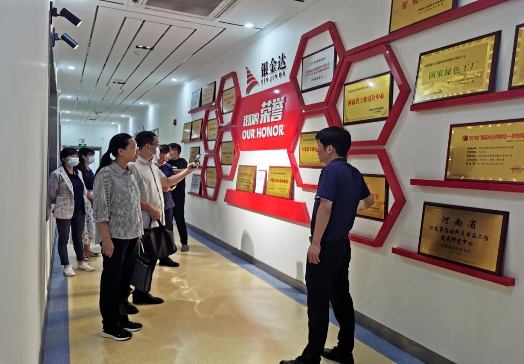 銀金達集團創(chuàng)新協(xié)同中心主任周宏濤陪同調(diào)研組一行參觀了達新源車間生產(chǎn)運行情況,并向調(diào)研組成員詳細(xì)匯報了公司發(fā)展歷程、科技創(chuàng)新、科研成果、資質(zhì)榮譽、生產(chǎn)效能、市場規(guī)模等相關(guān)情況。郝科偉局長對銀金達填補國內(nèi)空白的創(chuàng)新科研成果給予高度評價,指出企業(yè)要不斷提升技術(shù)創(chuàng)新能力,堅持以自主創(chuàng)新驅(qū)動企業(yè)高質(zhì)量發(fā)展。